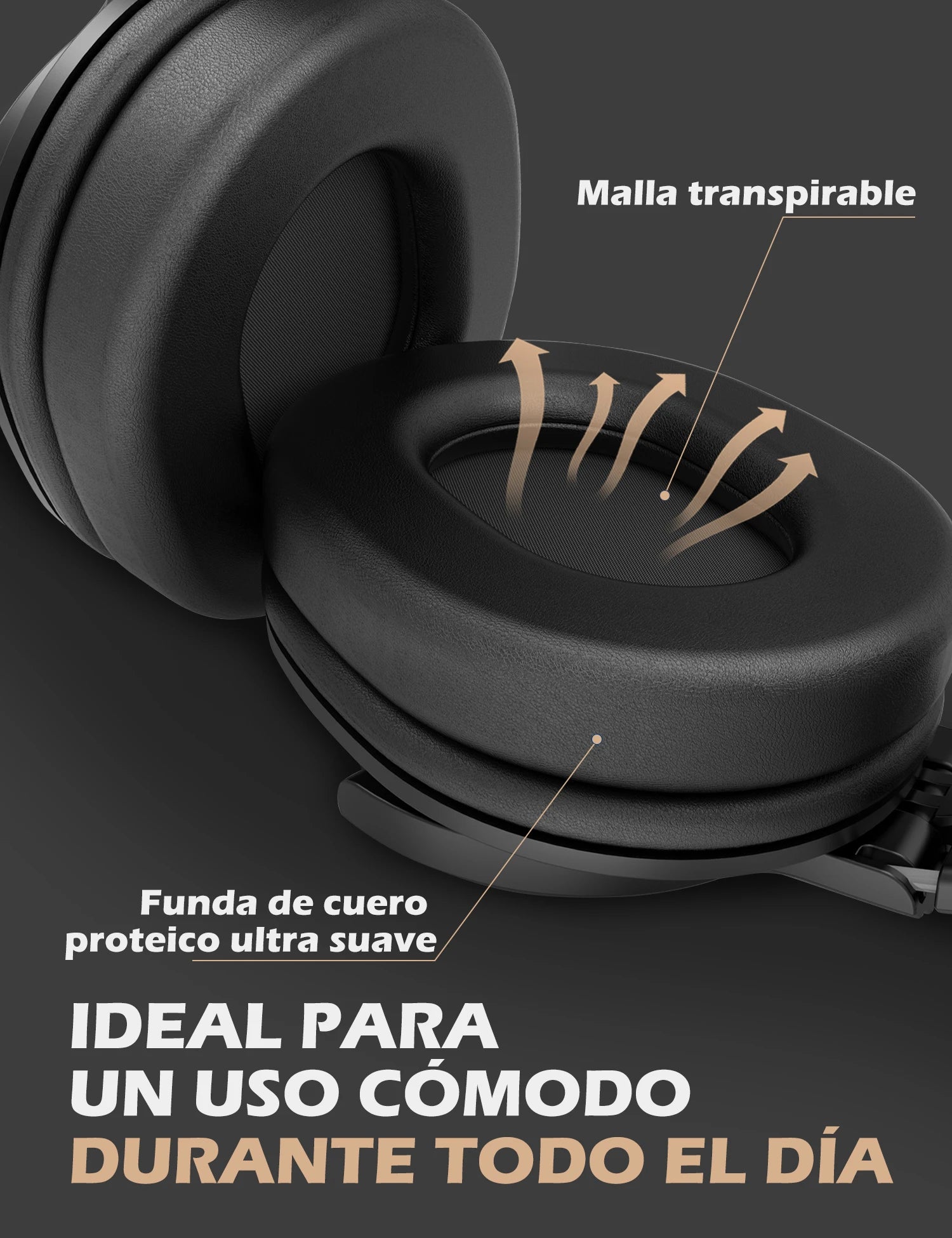 La cubierta de piel sintética ultrasuave y la malla transpirable se adaptan a la ergonomía y envuelven suavemente las orejas, para que no sientas ninguna molestia incluso después de usar los auriculares W50x durante todo el día. El ajuste perfecto no solo minimiza la presión y la fuga de sonido, sino que también reduce eficazmente el ruido ambiental.