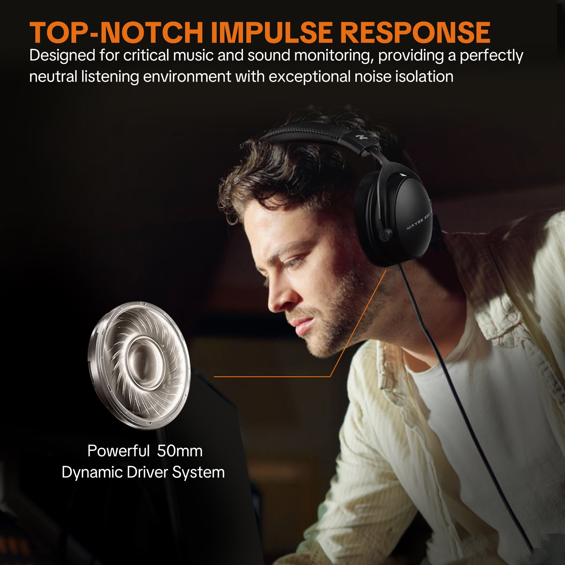 Los potentes auriculares de estudio W550x incorporan dos transductores de neodimio de 50 mm, una diadema acolchada con espuma viscoelástica y almohadillas de cuero y terciopelo. El kit de micrófono intercambiable incluido permite utilizar los W550x en cualquier situación: grabación, monitorización, producción musical y mucho más.