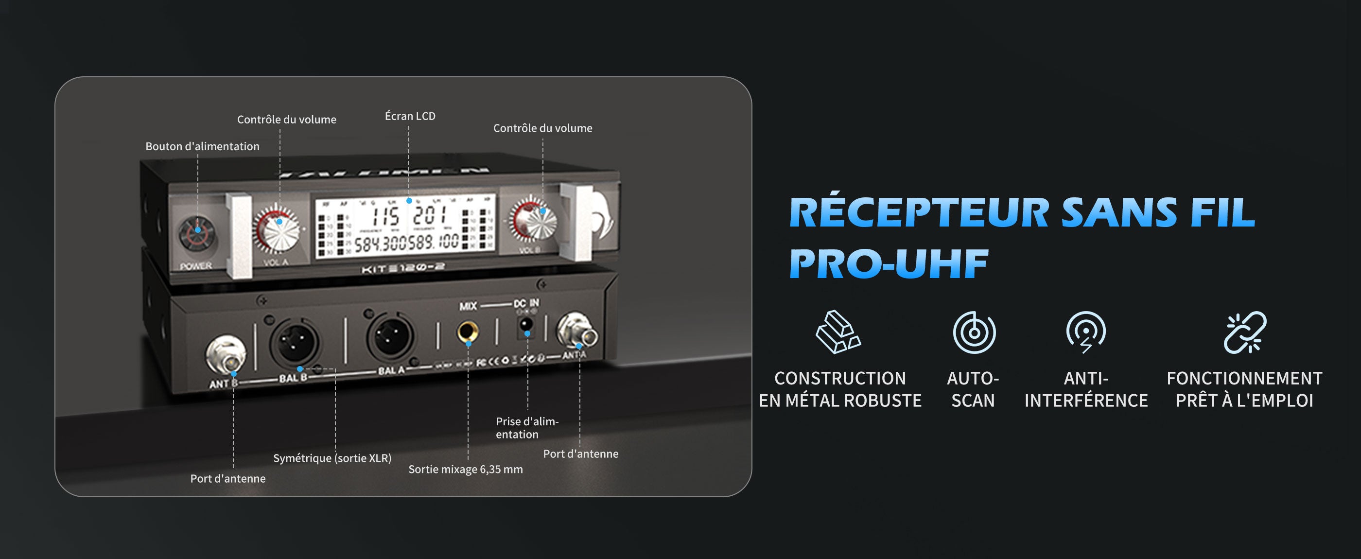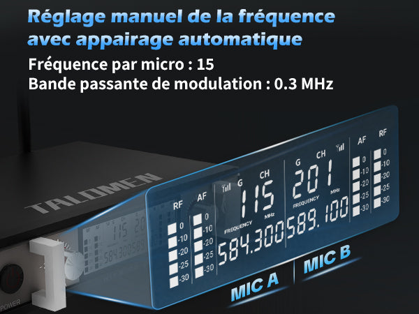 Talomen K120 | Système de microphone sans fil UHF professionnel