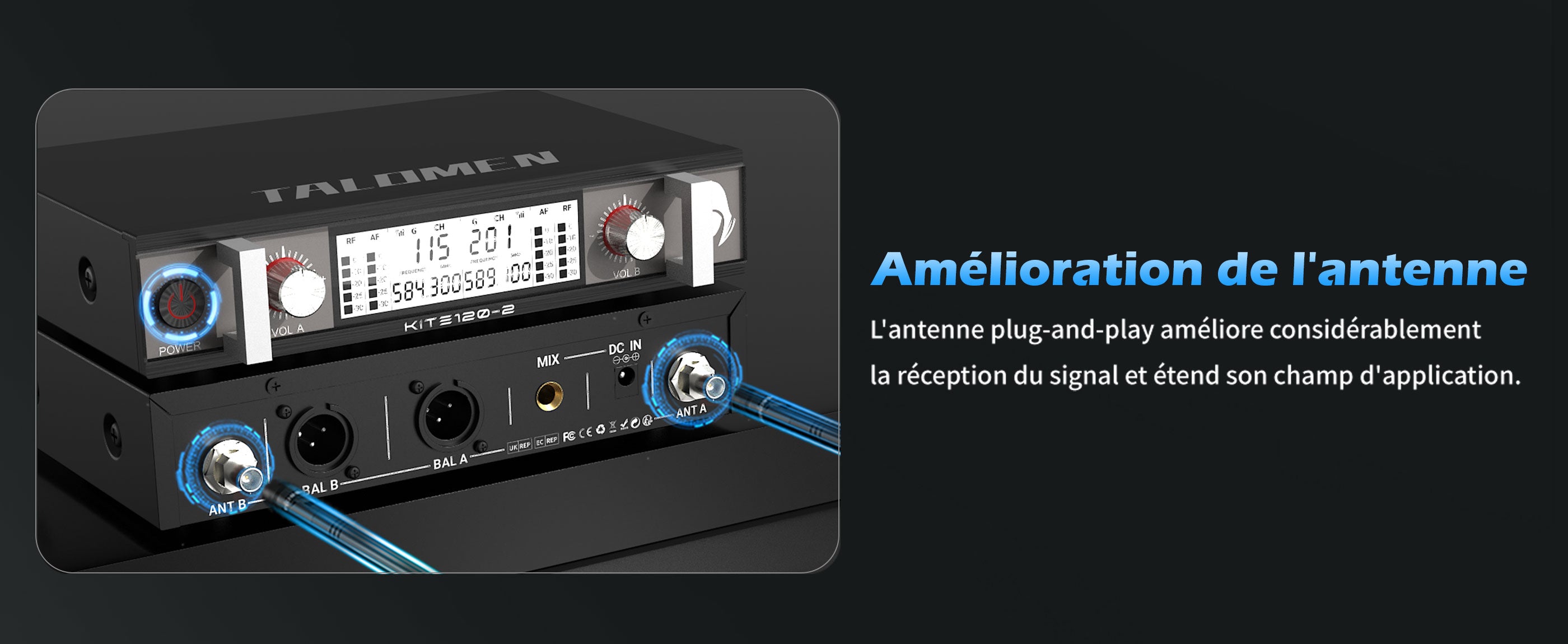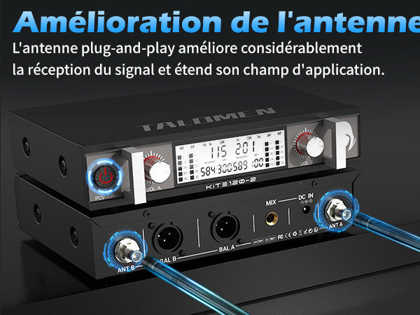 Le Talomen K120 est un système de microphone sans fil UHF à deux canaux. Il comprend un récepteur avec antenne personnalisée et deux microphones dynamiques réglés par des professionnels. Il est idéal pour les offices religieux, les soirées karaoké, les fêtes à domicile, etc.