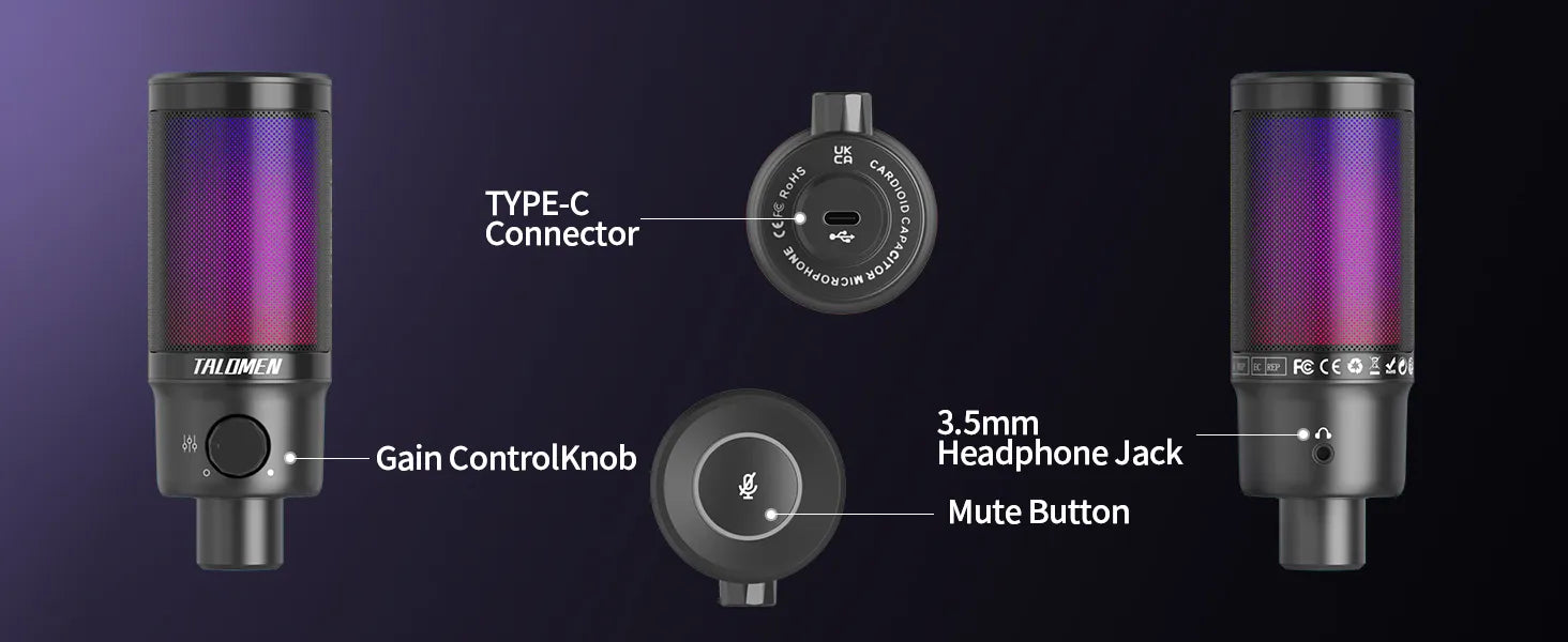 Le Talomen Falcon Stand est un microphone à condensateur cardioïde qui capte avec précision le son devant vous et réduit le bruit sur les côtés et à l'arrière. Il amplifie efficacement votre voix et réduit le bruit ambiant lorsque vous jouez ou diffusez en continu. Les microphones USB Talomen sont le cadeau idéal pour les joueurs et les YouTubeurs.
